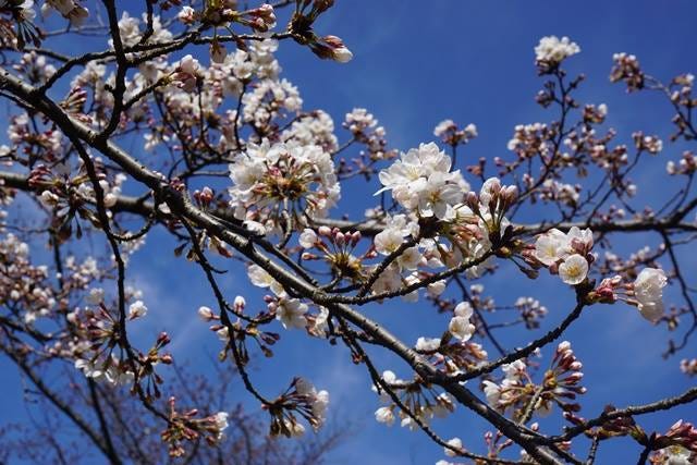 是說日本人真的很瘋賞花,為了賞花可以派代表徹夜鋪野餐墊佔場,除了小家庭、朋友或同事間的野餐,這幾年在櫻花樹下的「戀活」(聯誼)也很流行。比起在櫻花樹下野餐,我反而比較喜歡不期而遇:「原來這裡也有櫻花啊!」的感覺。事實上我看到的第一個櫻花花苞和第一朵盛開的櫻花,都是長假期間去學校圖書館時意外在工學院看到的,每次上下學都會經過的路旁,卻從來沒注意過原來這就是櫻花樹。(老實說櫻花的品種很多,我現在只能認得一種樹型而已)