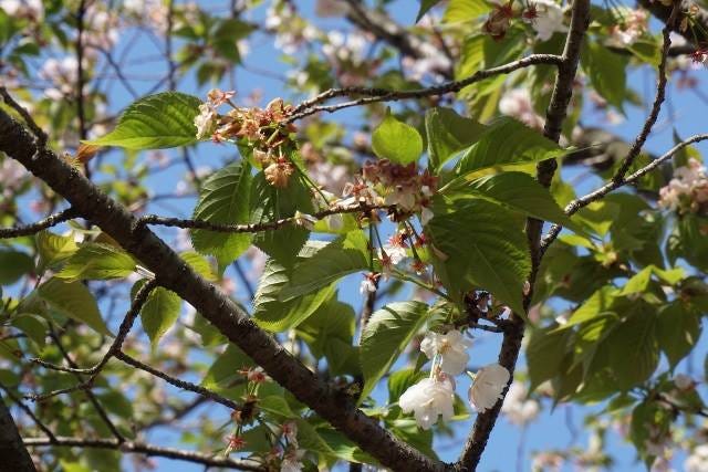 就像剛才說過的,比起特地去賞櫻,我喜歡出奇不遇的感覺。如果沒有那場派對,或許我就錯過了其實就在自己身旁的夜櫻。那天之後,滿開的櫻花被春之嵐打落,但隨之就是下圖綠意盎然的模樣了。