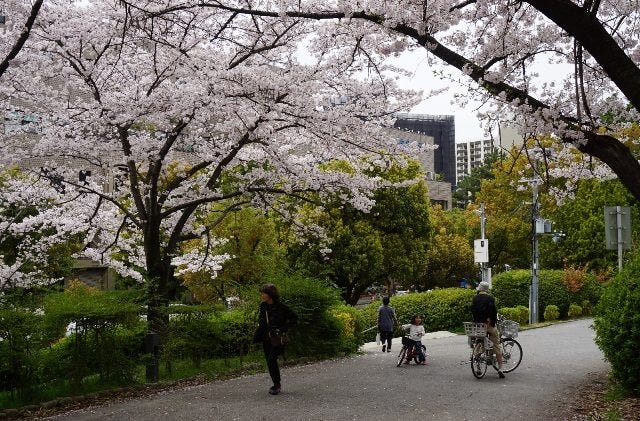 我現在住的地方叫做千里地區,是二戰後因為戰後嬰兒潮而開發的一片集合住宅區,雖然是在丘陵地上,除了商業機能實在是和台灣不能比(台灣的集合住宅區也一定會有不少商店在附近),在交通和綠地規劃上真的可以說是一步到位,千里南公園正是最佳佐證(其實這個公園出現在十月號的文章過了):四十多年前阪急千里線繼續向北延伸三站,就在沿線上種滿櫻花樹,並且和住民合力在千里南公園種植三千棵櫻花樹作為鐵路通車紀念。想要享受悠閒的午後,這裡真的是四季都有不同的景致,但換個角度想,從我住的地方到鄰近兩個電車站都要各穿過一個公園(千里南公園的面積大概是從清大校門到小吃部的範圍了),趕路時真的是很痛苦,想加快腳步也很難加快多少時間。