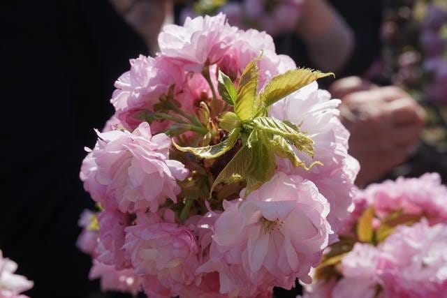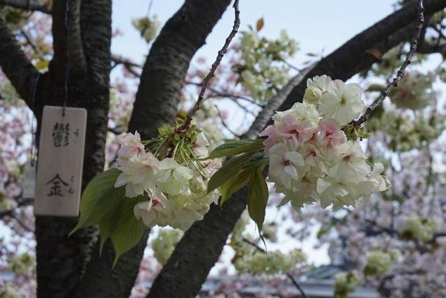 大阪造幣局櫻花通道之所以特別,是因為整條路收藏了來自日本各地的著名品種,一年當中就只開放一個星期可以入內參觀。因為本來就是設計來讓大家盡情欣賞賞櫻樂趣,幾乎每一株的高度,妳不需要特地使用那空出來的一雙手「調整」一下櫻花的角度,它們就真的在臉旁邊了。櫻花的品種很多(小常識,「里櫻」指的是園藝家自己配出來的品種,反義詞大自然原生種叫做「山櫻花」),花期也都有所不同,基本上大阪造幣局的櫻花花期都比較晚,所以即使「櫻前線」(天氣預報報導的各地櫻花開花情況,每一個地區會有一棵標準木當作指標,大阪的櫻花標準木在京橋)的公告已經說大阪「櫻滿開」了,可能大阪造幣局的櫻花通道都還沒開放時間呢!